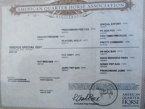 1200lbs, and is registered with AQHA; Zippo Pine Bar, Two Eyed Jack, Te